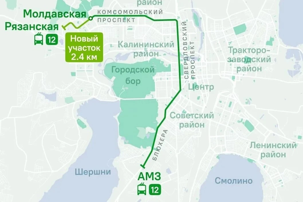 Теперь электротранспорт будет курсировать от АМЗ до улицы Рязанской. Троллейбусы поедут по улице Молдавской, Комсомольскому проспекту, улицам Чичерина и Салавата Юлаева.