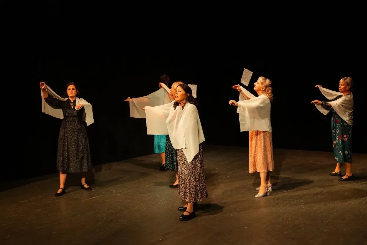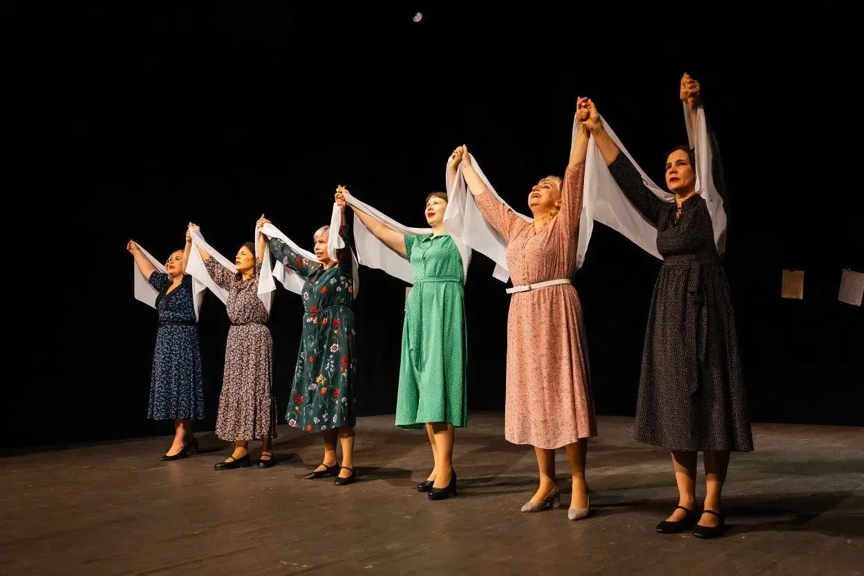 Первым на сцену вышел Верхотурский театр-студия «ГРАДЪ». В Челябинск артисты привезли спектакль-композицию «Молчание». Он основан на воспоминаниях участниц Великой Отечественной войны из книги Светланы Алексиевич «У войны не женское лицо».