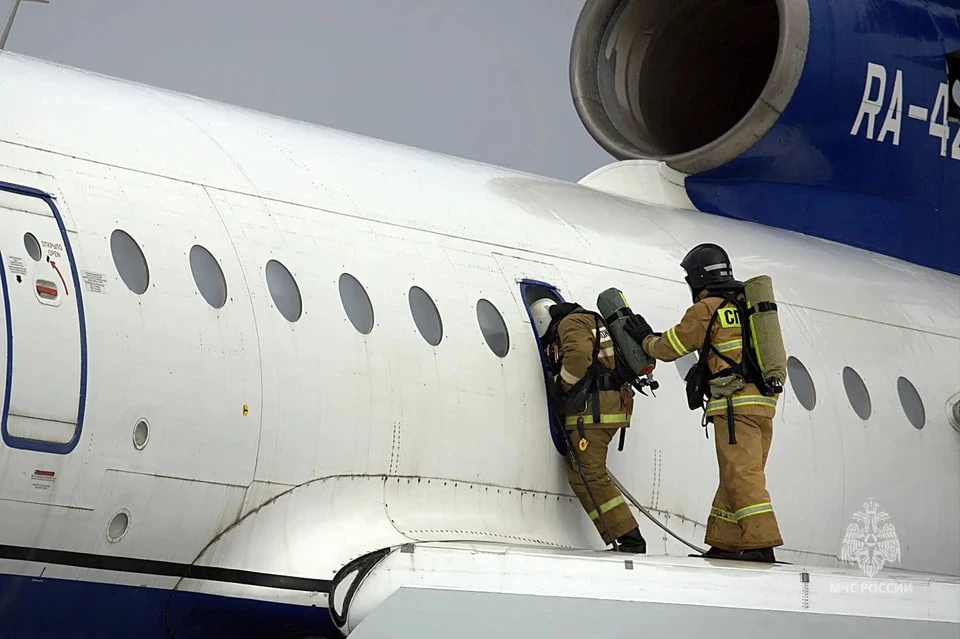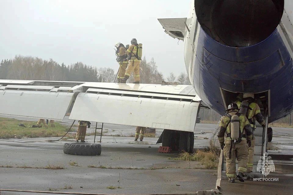 В челябинском аэропорту прошли учения. По их легенде, загорелся самолет, совершивший аварийную посадку.