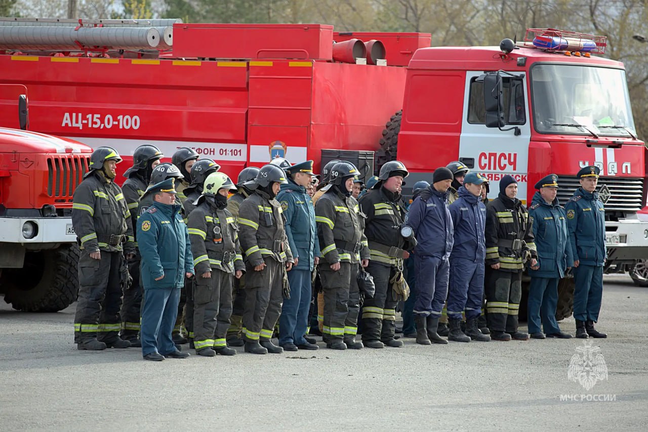 В аэропорту имени Курчатова отработали алгоритм действий при аварийной посадке самолета. По легенде, пассажирский борт приземлился вне аэродрома, а затем загорелся. Спасателям предстояло найти его местоположение, эвакуировать людей и потушить пламя.