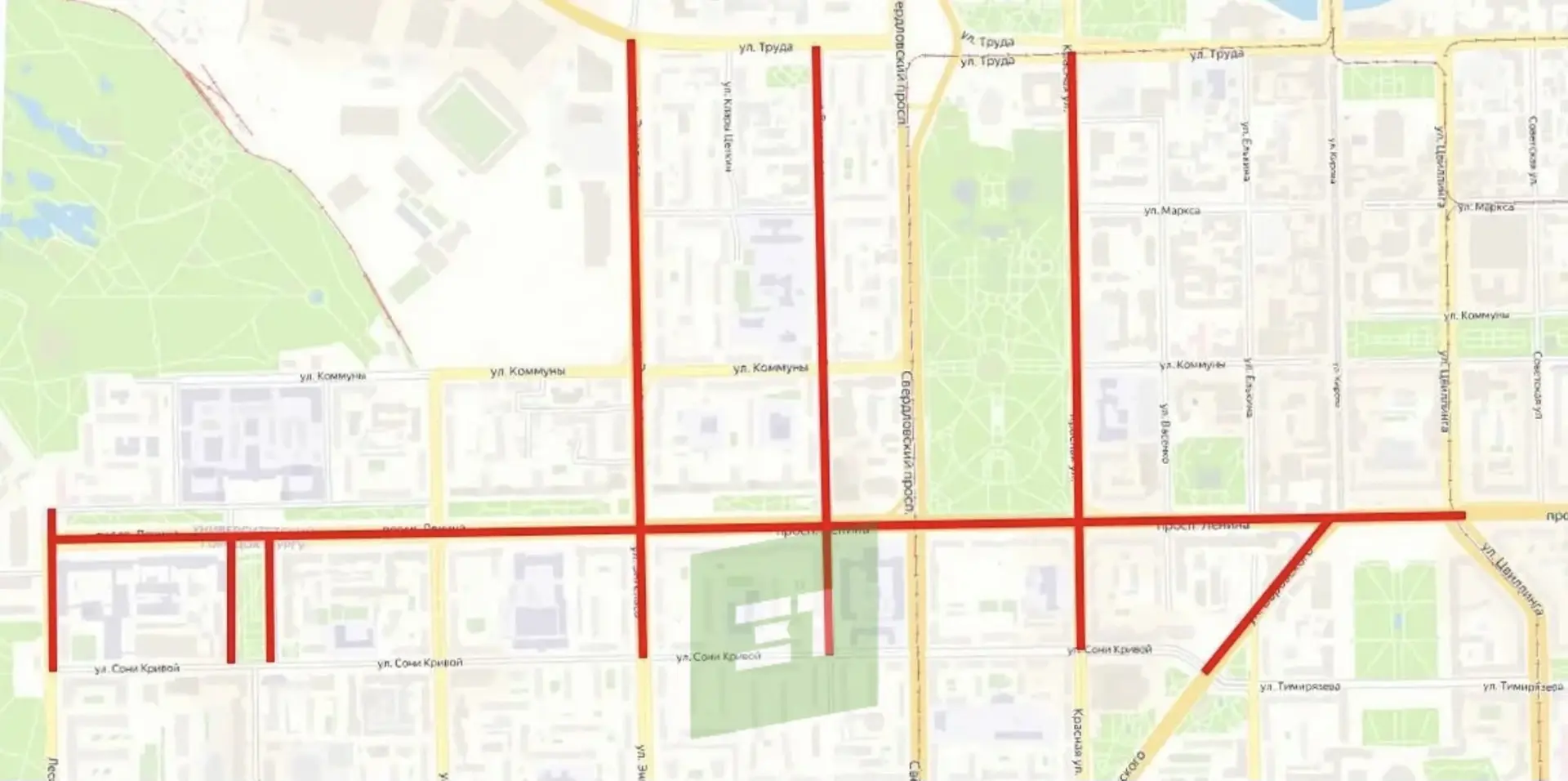 Лесопарковая: от Сони Кривой до Коммуны;