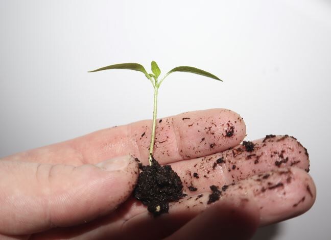 Лучше всего увлажнить рассаду за два дня до пересадки. Во время пересадки слегка уплотните почву в горшочках и сделайте углубление, добавив щепотку микоризы и порошка «Корневина». Глубина посадки должна быть такой же, как и была изначально. Перец не переносит сильного заглубления. После посадки аккуратно уплотните земельный слой и полейте небольшим количеством воды, чтобы хорошо смочить почву.