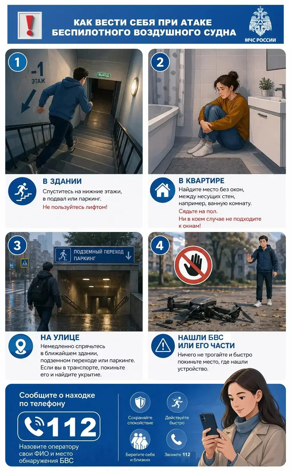 В МЧС региона рассказали, как вести себя при объявлении беспилотной опасности.
