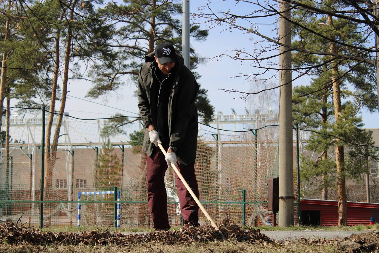 Сотрудники регионального Минспорта провели уборку, прилегающей к легкоатлетическому манежу УралГУФКа, территории от прошлогодней листвы.