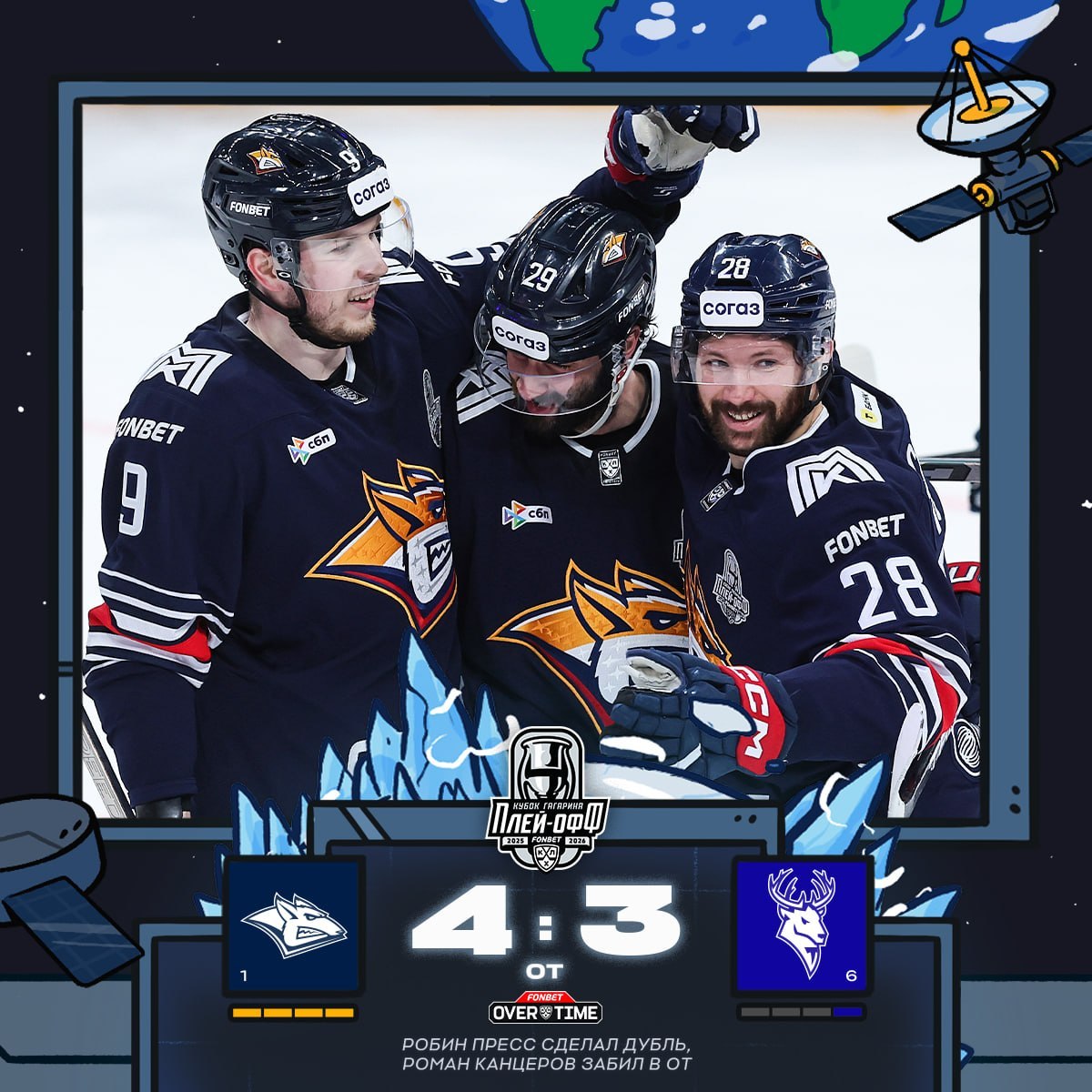 В составе победителей шайбы забросили Робин Пресс (10-я и 30-я минуты), Даниил Вовченко (40) и Роман Канцеров (66). У проигравших отличились Андрей Белевич (23), Егор Виноградов (45) и Максим Летунов (59).